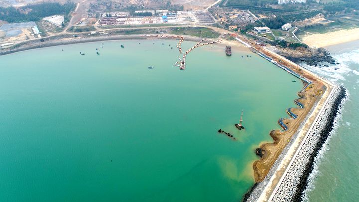 “2月19日復(fù)工以來(lái),投入18條大、中型抽沙作業(yè)船,其中最大的可一次裝載4600方!奔瘓F(tuán)項(xiàng)目管理部李海朗介紹粵西LNG陸域回填部分工作情況!澳壳笆┕、監(jiān)理人員都全部就位,接下來(lái)還將根據(jù)工程進(jìn)度情況,繼續(xù)加大工程人員、機(jī)具投入力度。”