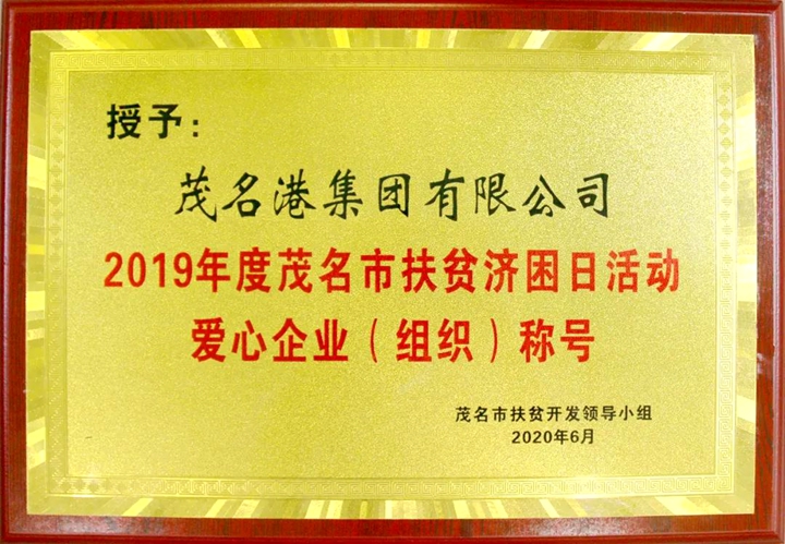 近日,在茂名市委、市政府舉行的2020年“廣東扶貧濟困日”活動儀式上,茂名港集團被授予2019年度茂名市扶貧濟困日活動“愛心企業(yè)(組織)”榮譽稱號,對集團的扶貧濟困工作予以充分肯定。集團黨委書記、董事長劉乃英代表集團出席了本次活動。